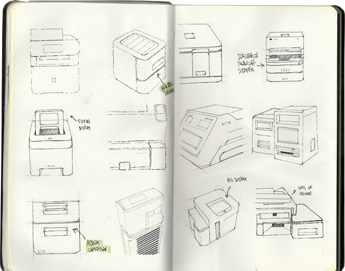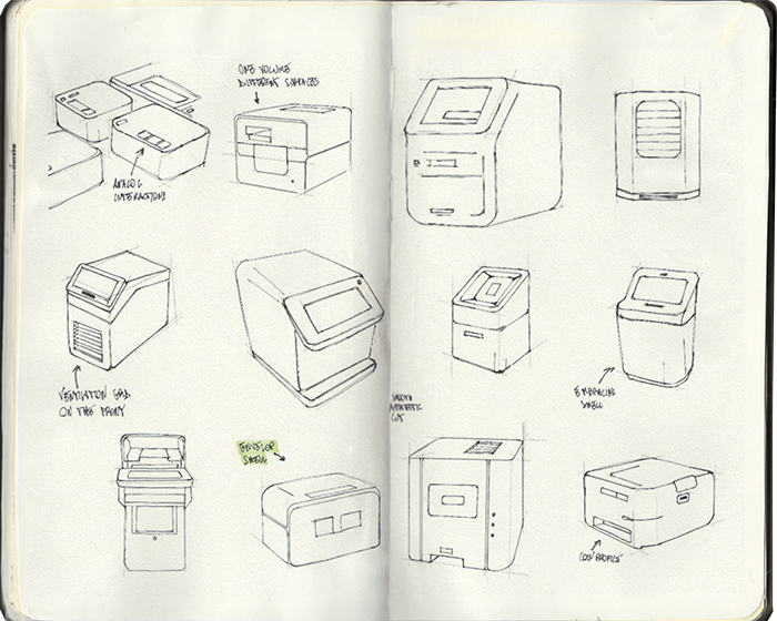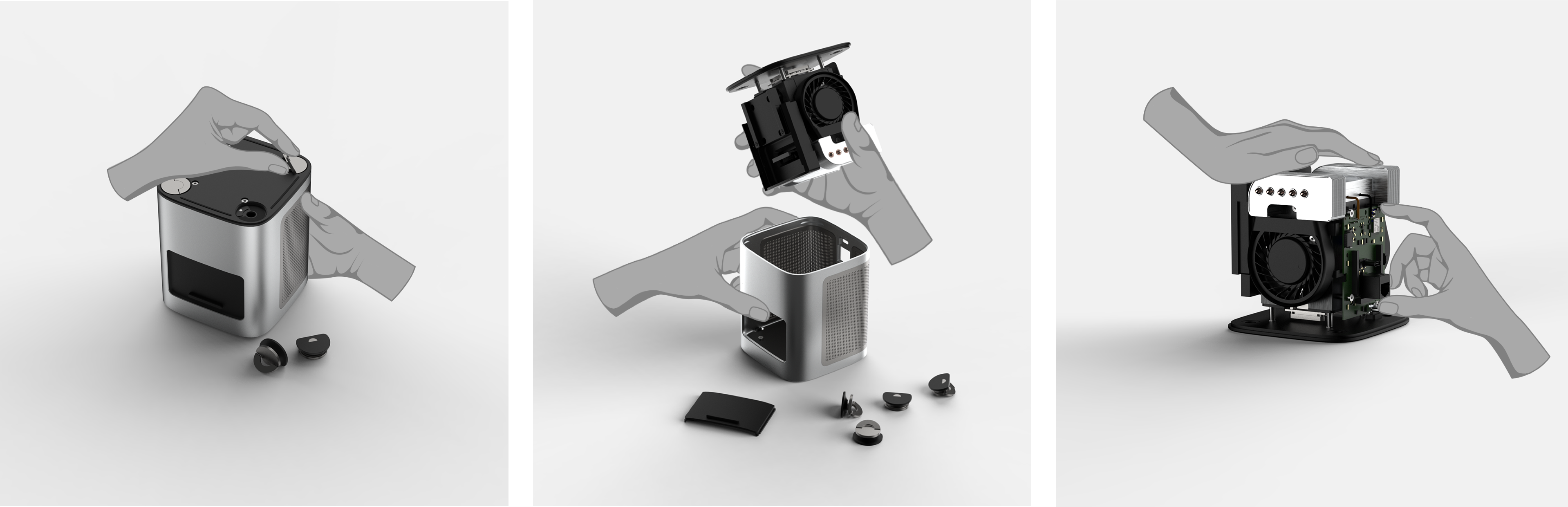 Form development was driven by the need to optimise air circulation for faster cooling. Different configurations and shapes were explored to maximise airflow while maintaining a compact footprint and directing hot air away from the user.