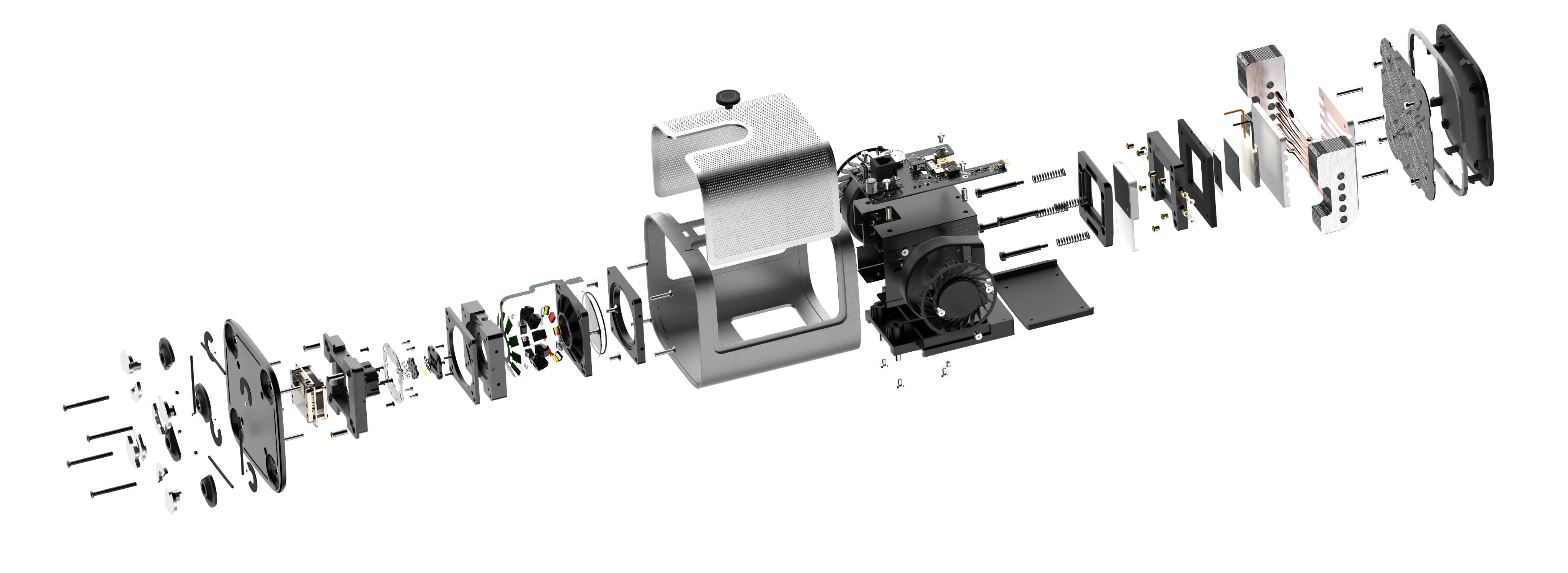 The thermal and optical modules are highly complex assemblies with numerous components. Despite this, the system is designed to integrate them into a compact architecture maximising portability and durability.